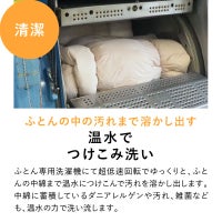 ふとん専用洗濯機で、温水で中綿までしっかりクリーニングし、丁寧にふっくらと仕上げます。