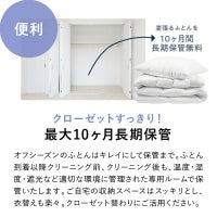 ふとんをクリーニング店まで持っていくのは大変…しかし、ラクリなら自宅にいたままで、ふとんの集荷もお届けもお任せいただけます。もちろん毎回、送料は無料!10ヶ月間保管無料なので必要なタイミングでお戻しします。忙しい日々を送るあなたの強い味方です。※一部地域を除く