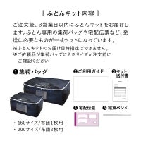 ご注文後、3営業日以内にふとんキットをお届けします。 お客様のふとんを入れるLACURI専用の集荷バッグや宅配伝票など、発送に必要なものが一式セットになっています。 ※ふとんキットのお届け日時指定はできません。 ※ご依頼品が集荷バッグに入るサイズか 注文前にご確認ください。